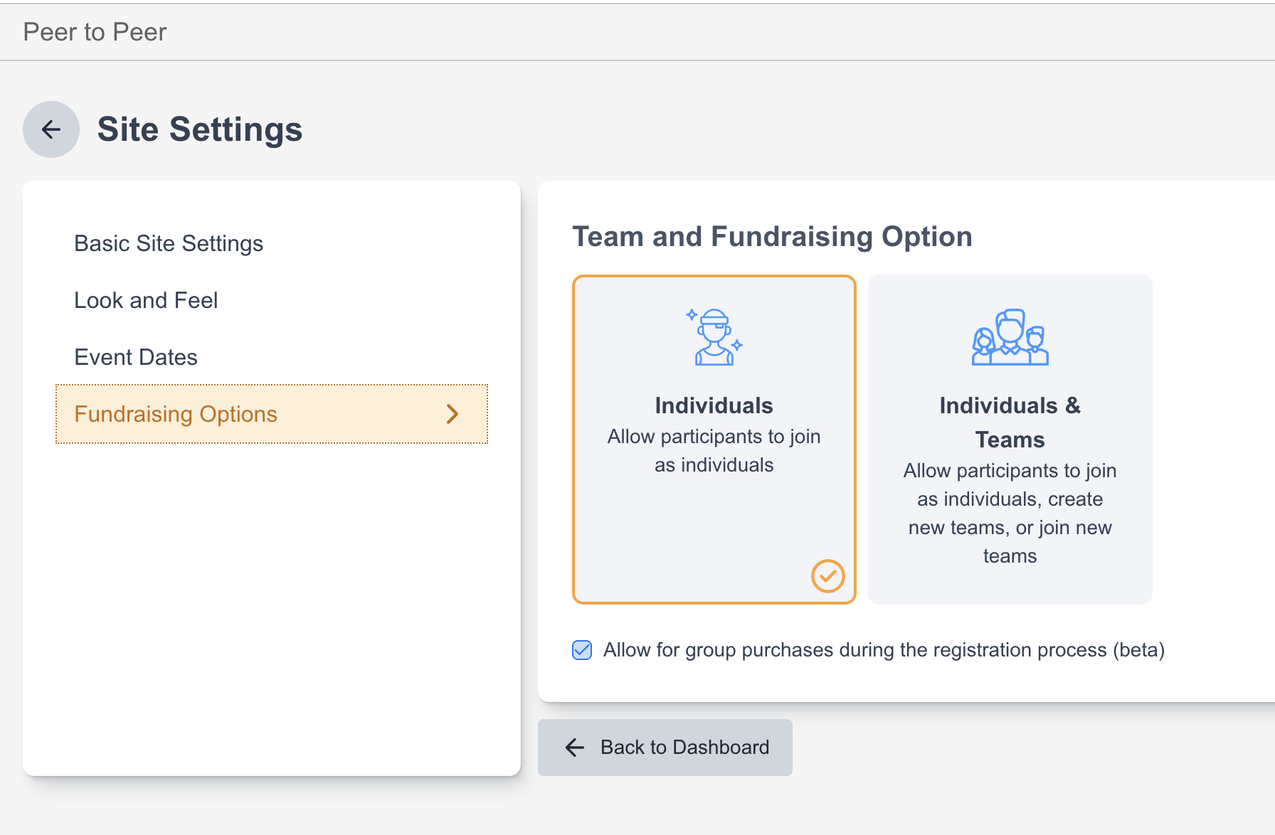 Individuals - Supporters can only join as individual fundraisers on the site