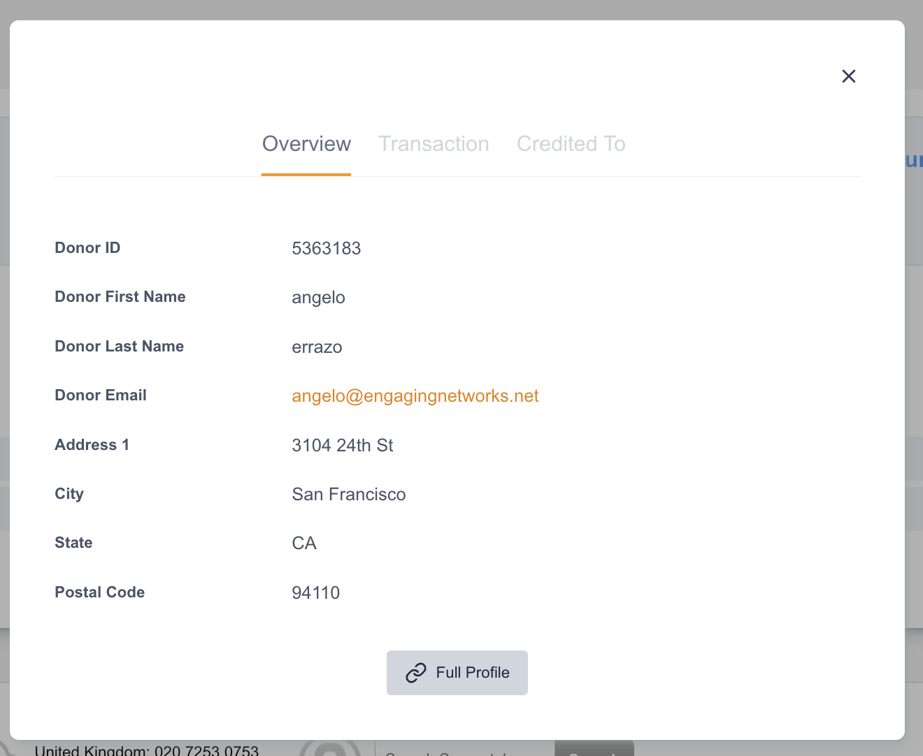Donor Information | This would be the Supporter Fields or the Information about the donor. |