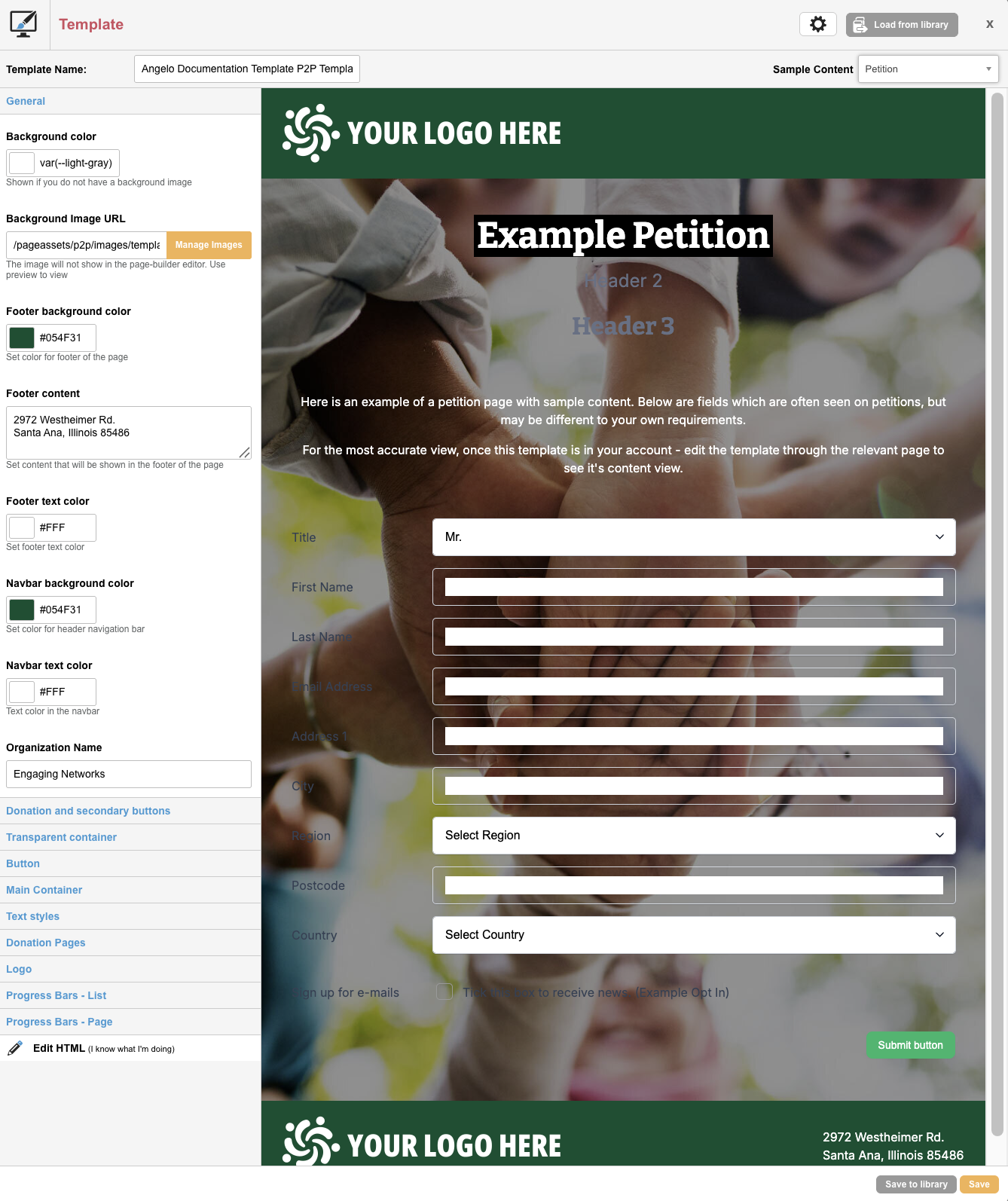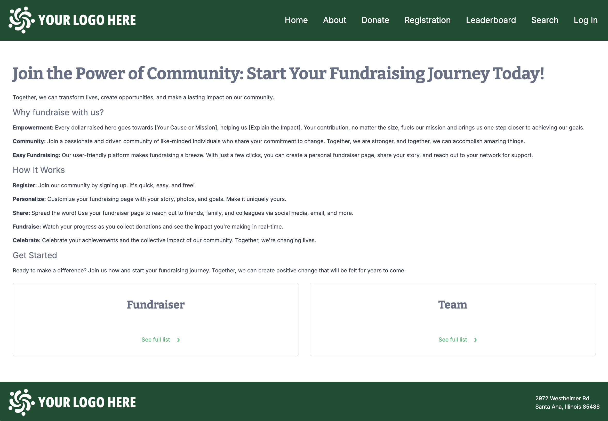 Footer Content | Set content that will be shown in the footer of the page. Usually use for Organization Address |