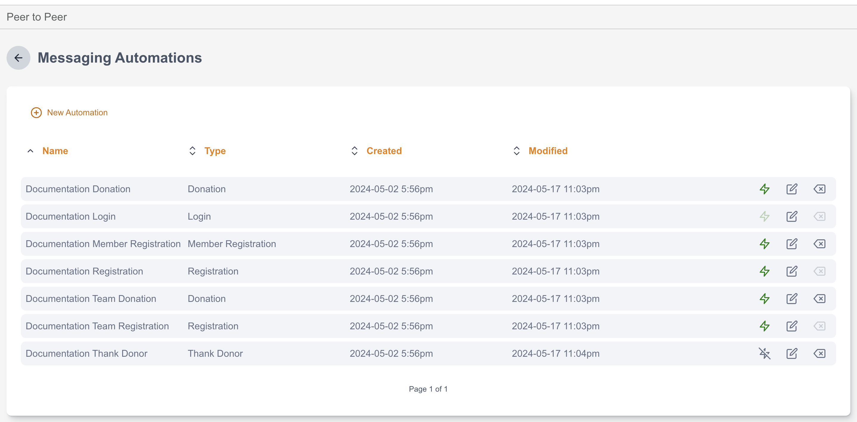 ![]() | This indicates that the automation message is currently activated and is in use for your Peer to Peer site. |