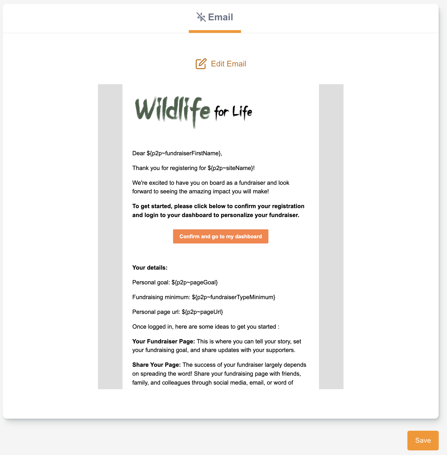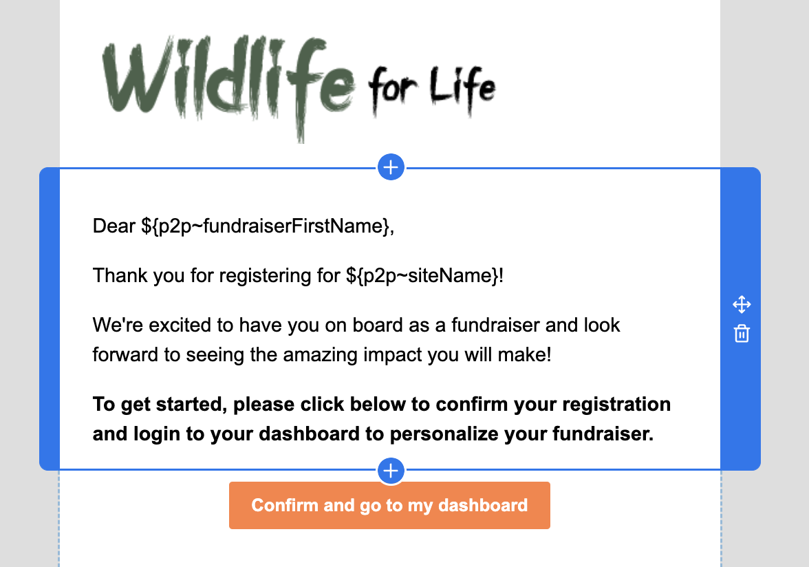 Registration | This automation sends a confirmation email to new fundraisers as they register on the site. |