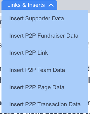 Other Supporter Fields that you can insert will have the default merge tags formatted like {user_data~Supporter Field}