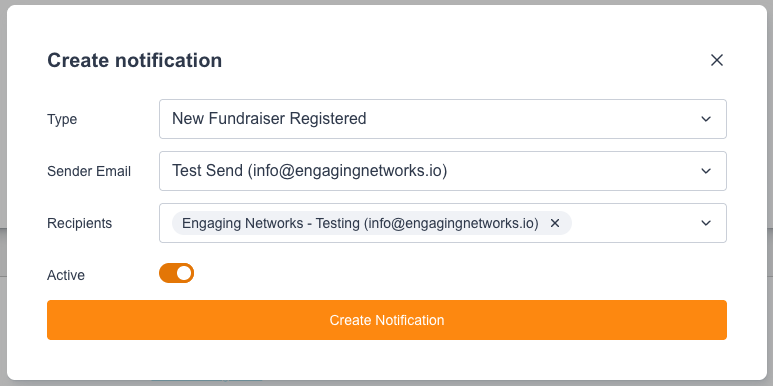 New Fundraiser Registered Notification