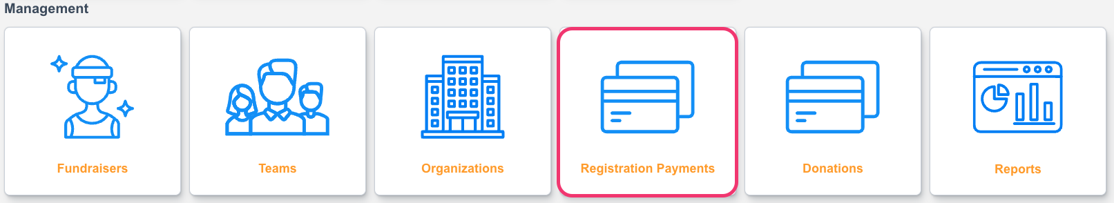 Under P2P > Sites > edit relevant site > Select Registration Payment (under Management). The Registration Payment allows you to access a comprehensive list of registration payments, and efficiently manage the associated details and donations made on the site.