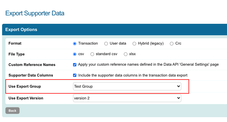 Remember that the new Export Group will be available for using when you export supporter data.