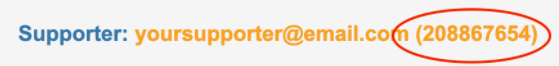 Supporter ID is the number which can be found in the supporter’s account record.