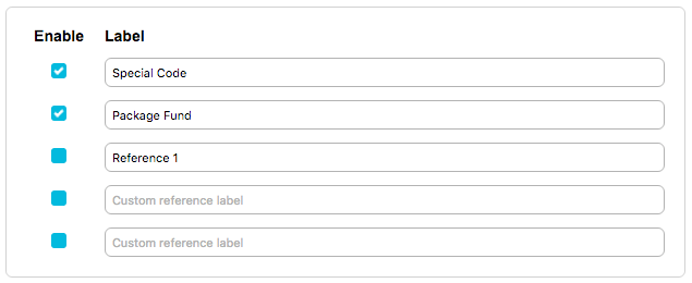 You can enable five reference fields in this section. These fields allow you to input custom data values that are stored transactionally when a page is submitted. It avoids having to hide a value in a form field, or pass a variable over the URL.