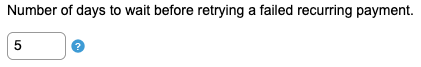 When we process recurring payments, we will try again up to three times. After the initial rejection, we will try again the next day. If this fails, we will try again a final time after a specified number of days. You can specify the number of days to wait for this final try. Note that if the payment fails at this final try, it will be suspended.